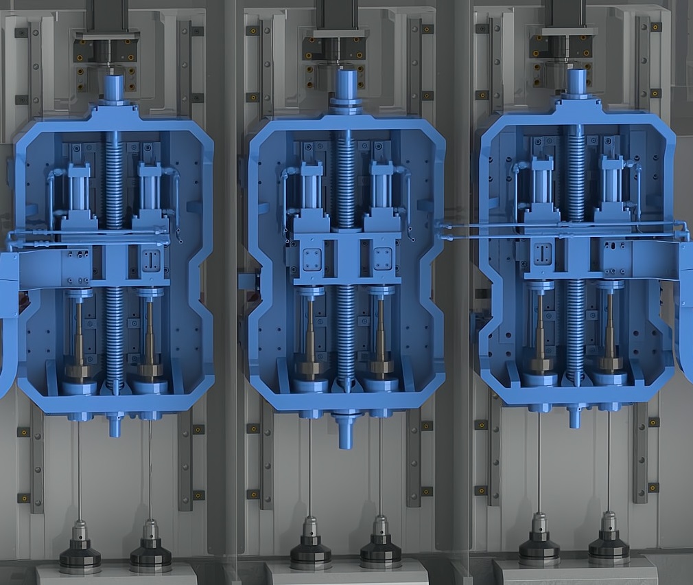簡(jiǎn)要說明:倒立式布局設(shè)計(jì)。槍鉆在下,工件在上,從下向上鉆削加工。排屑順暢,占地面積小。根據(jù)主軸軸數(shù)的不同,機(jī)床分為獨(dú)立的多個(gè)加工單元。各加工單元可單獨(dú)或同時(shí)運(yùn)動(dòng),互不干涉。