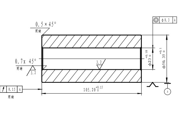 活塞銷是汽車發動機中重要的零件之一。該零件在槍鉆機床上最主要的加工工序是內孔的鉆削。零件圖紙參見下圖。